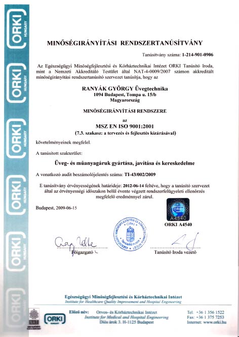 Cégünk saját fejlesztésű és gyártású termékeire az Egészségügyi Minőségfejlesztési és Kórháztechnikai Intézet EK tanúsítványával rendelkezik. Ezenkívül rendelkezünk az ISO minőségirányítási rendszertanúsítványaival. Az általunk használt alapanyagok szintén mind bevizsgáltak és tanúsítottak. Cégünket 2007-ben a "Hagyományörző Vállakozás" díjjal tüntették ki, 2014-ben pedig nekünk ítélték a "Magyar Termék Nagydíj"-at.